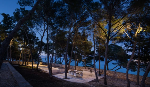 بمجرد وصولك إلى هذه الملكية الخاصة المدهشة مباشرة على البحر، ستكتشف واحة دالماتية مصممة لتقديم أقصى درجات الاسترخاء والمتعة للضيوف، مع حمام سباحة خارجي لا نهائي مدفأ بمساحة 24 مترًا مربعًا، محاط بكراسي استلقاء مريحة، ويقع في حديقة مُنسقة بشكل جميل. يحتوي الفناء الخارجي الواسع على منطقة جلوس وتناول طعام مخصصة، مع مطبخ صيفي في الهواء الطلق مزود بـ شواية للوجبات في الهواء الطلق. صالة رياضية خارجية خاصة مزودة بمعدات TRX، بالإضافة إلى شبكة لضرب كرات الغولف و منطقة تدريب للغولف، توفر مساحة كبيرة للترفيه. بالإضافة إلى ذلك، يمكن للضيوف الاسترخاء في المسرح الروماني الخاص بالفيلا، وهو مثالي للاجتماعات الحميمية.