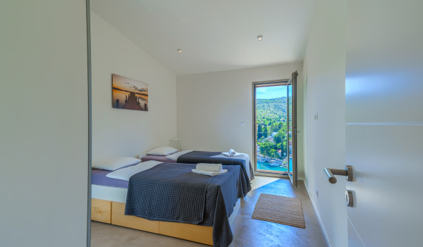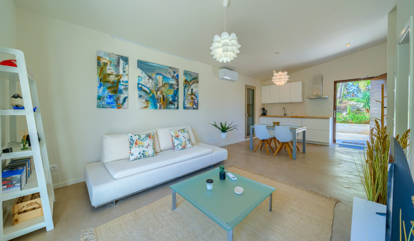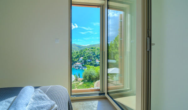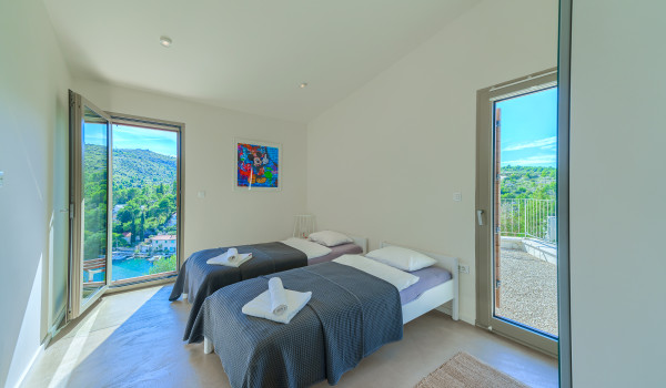واحدة من الميزات الفريدة في الفيلا هي دار الضيافة، التي تقع بجوار المبنى الرئيسي. مع مطبخ مجهز بالكامل، يمكن استخدامها كـ وحدة مستقلة تمامًا. تحتوي غرفة النوم المزدوجة على سرير بحجم كينغ، بالإضافة إلى حمام داخلي مع دش، مرحاض ومناشف، مع إمكانية الوصول إلى التراس المطل على الخليج والطبيعة المحيطة.