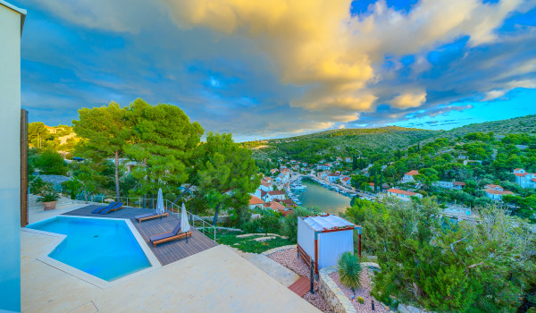 تقع فيلا سي أنجل الفاخرة على الواجهة البحرية في براك في بلدة بوبوفيشكا الصغيرة، على جزيرة براك، على بعد 650 مترًا فقط من الشاطئ والبحر. تم تصميم هذه الفيلا العائلية الفريدة بمساحة 190 مترًا مربعًا للإيجار والعطلات، وهي مبنية على قطعة أرض بمساحة 1300 متر مربع مع حديقة، ومسبح خارجي مدفأ بمساحة 28 مترًا مربعًا، وإطلالة رائعة على البحر. يجمع التصميم الحديث بين الطبيعة المحيطة، مما يخلق تناغمًا ويوفر المكان المثالي للهروب من الحياة اليومية والاستمتاع بالطبيعة.