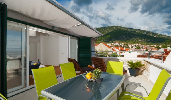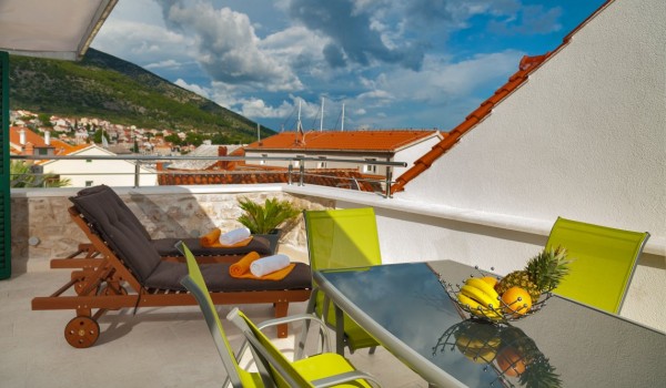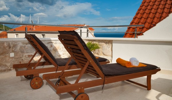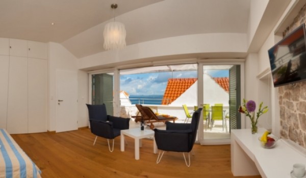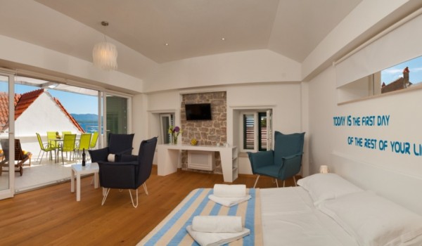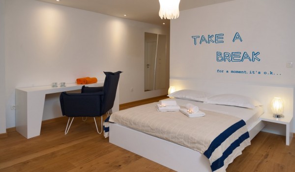 تؤدي السلالم إلى الطابق الأخير، الطابق الثالث من هذه الفيلا الخاصة ، حيث توجد غرفة النوم الرئيسية الفسيحة مع سرير مزدوج. تمتد غرفة النوم الرئيسية على الطابق الثالث بالكامل. طاولة يمكن استخدامها كمكتب وطاولة صغيرة وكراسي للراحة وجدت مكانها أيضًا. تحتوي هذه الغرفة على شرفة مريحة خاصة بها. يوجد على الشرفة مقاعد وكراسي للاستمتاع بالشمس. يمتد المنظر من الشرفة بعيدًا إلى اللون الأزرق الخالي من العيوب للبحر.