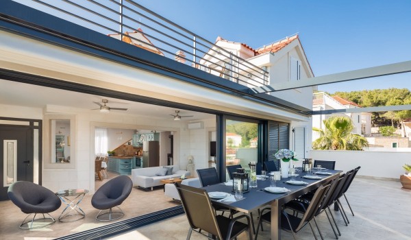 تغطي فيلا Brač Sea Horizon الفاخرة 282 مترًا مربعًا من مساحة المعيشة ، وتقع في عقار بمساحة إجمالية تبلغ 1500 متر مربع. الفيلا مكونة من ثلاثة طوابق ارضي واول وثاني. يحتوي الطابق الأرضي على مدخل منفصل ، والطابقين الأول والثاني متصلان بواسطة سلالم داخلية.