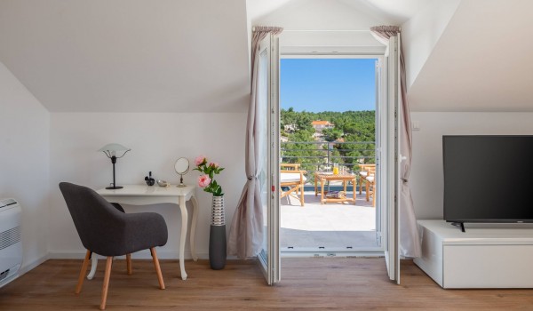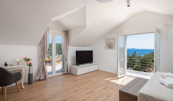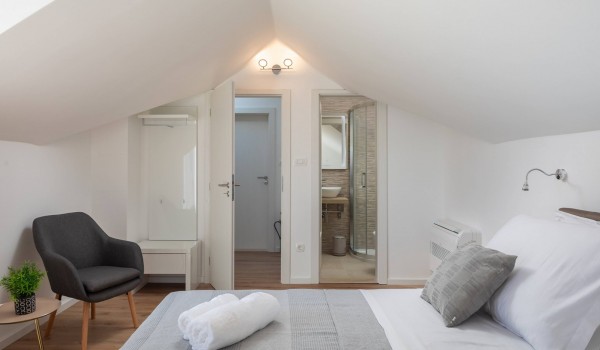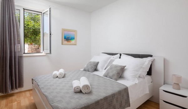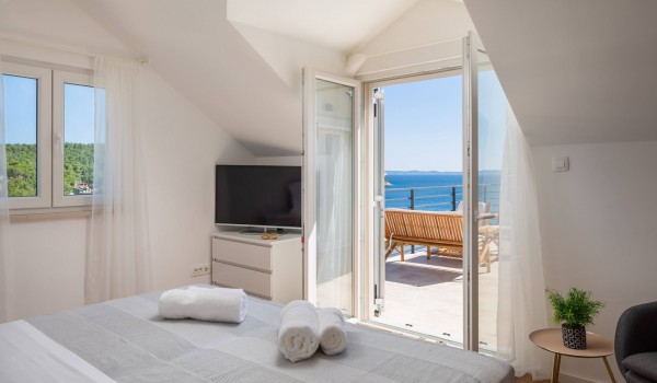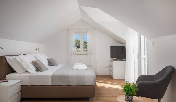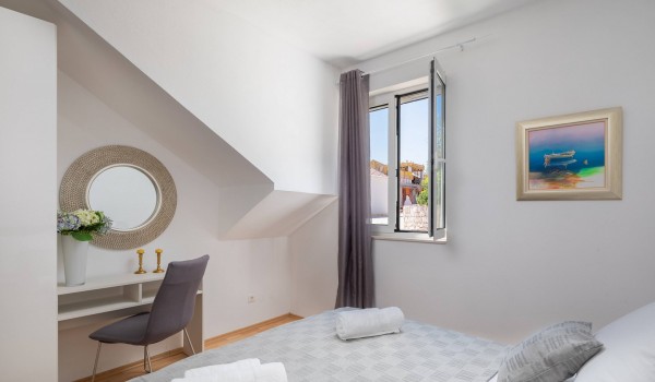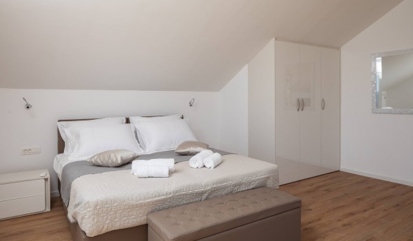يوجد في الطابق الثاني غرفتا نوم مع سرير مزدوج ، تحتوي إحداهما على حمام داخلي مع دش ، وتحتوي غرفة النوم الثانية على حمام خاص مع دش به كوة يمكنك من خلالها النظر إلى النجوم أثناء الاستمتاع بالحمام. تتمتع كلتا غرفتي النوم بإمكانية الوصول إلى شرفة مع أثاث خارجي وإطلالة خلابة على البحر الأدرياتيكي.