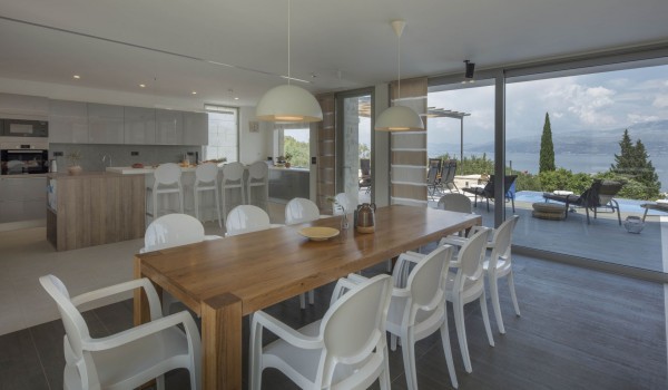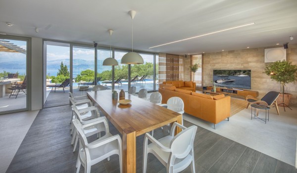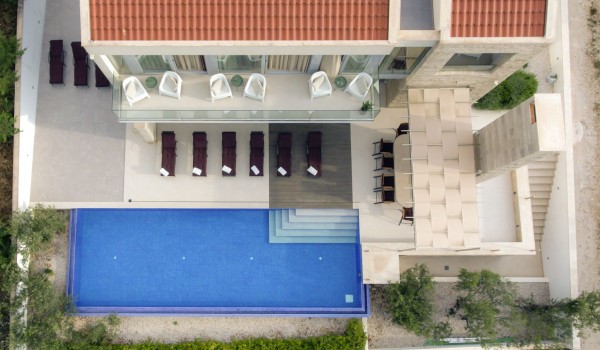 تمتد هذه الفيلا الكرواتية الفاخرة على طابقين: الأرضي والأول. تضم حديقتها مسبحًا خارجيًا مُدفأً بمساحة ١٢ × ٥ أمتار، مع تراس واسع ودُش خارجي.