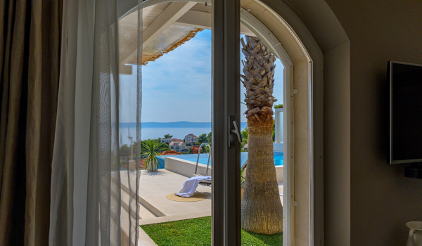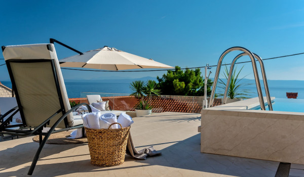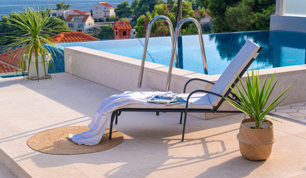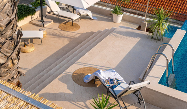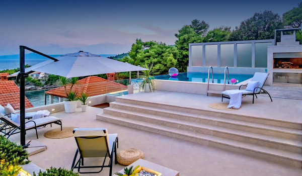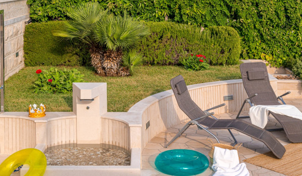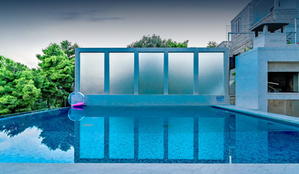 عند الوصول إلى خليج Puntinak الجميل والقيام بنزهة قصيرة من البحر أو القيادة من المدن المحيطة في جزيرة Brač إلى Villa Stone Castle Brač الفاخرة ، ستسعد بالساحل الجميل والرائحة المسكرة لأشجار الصنوبر المحيطة الأشجار. يتكون مدخل فيلا العطلات من سلالم حجرية فاخرة تؤدي إلى الشرفة الرئيسية ذات الإطلالة الساحرة. الشرفة تنضح بالفخامة ، ولكن في نفس الوقت الراحة ، التي تزينها لؤلؤة هذا المبنى المهيب ، المسبح اللامتناهي المدفأ الذي تبلغ مساحته 40 مترًا مربعًا مع دش خارجي يمنح الضيف شعورًا بالوحدة المطلقة مع البحر. بجانب المسبح توجد كراسي مريحة مع مظلات محاطة بأشجار النخيل الاستوائية ، وهي مثالية للاسترخاء والاستمتاع بكتابك المفضل.