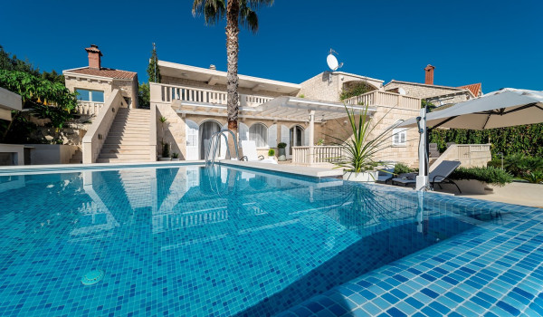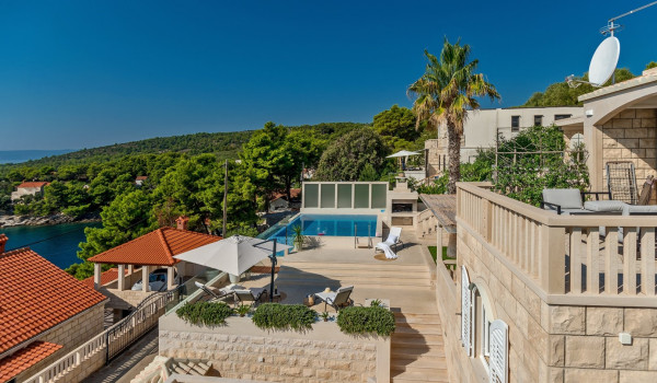 فيلا Stone Castle Brač الفاخرة مع مسبح مدفأ وإطلالة بانورامية على البحر ومرسين للسفن هي فيلا مصنوعة من حجر Brač الضخم الشهير.