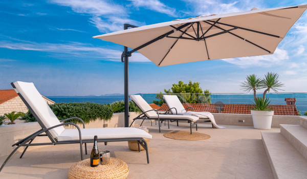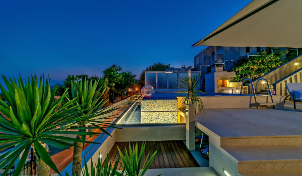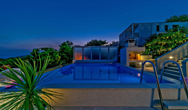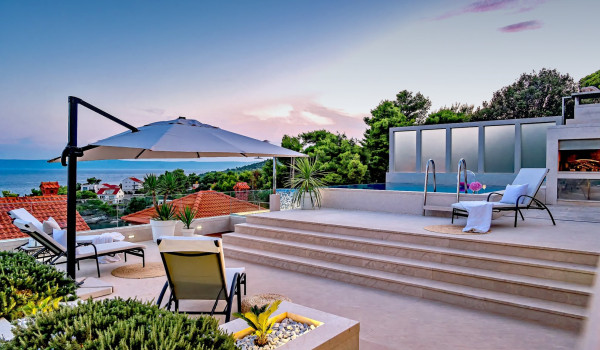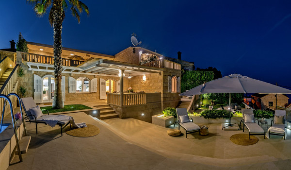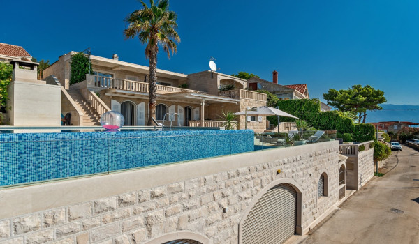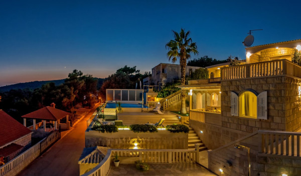 هذه الفيلا الفاخرة للإيجار والعطلة تتكون من 3 أجزاء بمداخل منفصلة: طابق أرضي مرتفع ، أسفله يوجد جراج واسع بمساحة 120 متر مربع ، والطابق الأول. وتقع على عقار بمسا340 مترًا مربعًا، منها 240 مترًا مربعًا مساحة معيشة ، و100 مترًا مربعًا شرفة مع مسبح مدفأ لا متناهي مساحته 40 مترًا مربعًا ، وملعبًا للأطفال مع ترامبولين، وزلاجة وأرجوحة ، بالإضافة إلى مسبح للأطفال وكراسي استلقاء للتشمس وغرفة طعام صيفية مغطاة ومدفأة وطاولة طعام خارجية تتسع لـ 12 أشخاص. هذه المساحة الخارجية في Villa Stone Castle Brač الفاخرة هي واحة مثالية لامتصاص شمس البحر الأبيض المتوسط الذهبية في الصباح وإعداد الأكلات المحلية معًا أثناء مراقبة أفق البحر.