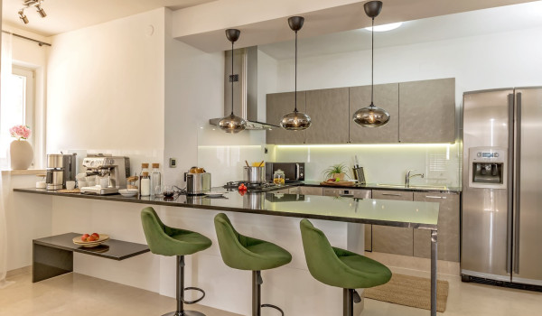 يحتوي التصميم الداخلي الحديث لـ Villa Stone Castle Brač الفاخر على جرعة من الدفء الذي سيجعلك تشعر وكأنك في المنزل. الأثاث بخطوط بسيطة ونظيفة وتفاصيل راقية وغير مزعجة هي ما يجعل القدوم إلى هذه الفيلا أمرًا حتميًا