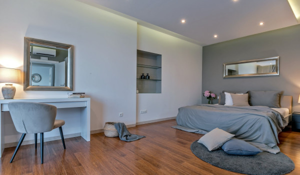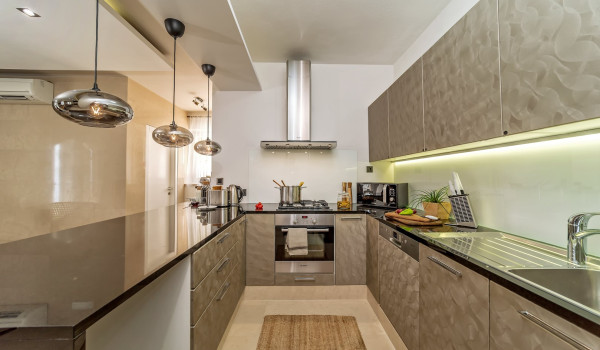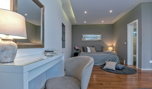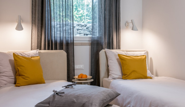 يتكون الطابق الأرضي المرتفع للفيلا الخاصة الفاخرة من غرفة معيشة ومطبخ وغرفة طعام وغرفتي نوم. الجزء الشرقي من الطابق الأول مجهز بمطبخ آخر مع طاولة طعام وغرفة معيشة مع أريكة سرير كسرير إضافي. يوجد في هذا الجزء أيضًا غرفتي نوم. في الجزء الغربي من الأرض ، تتوفر غرفتا نوم أكثر اتساعًا ، تحتوي إحداهما على أريكة يمكن أن تكون سريرًا إضافيًا آخر.