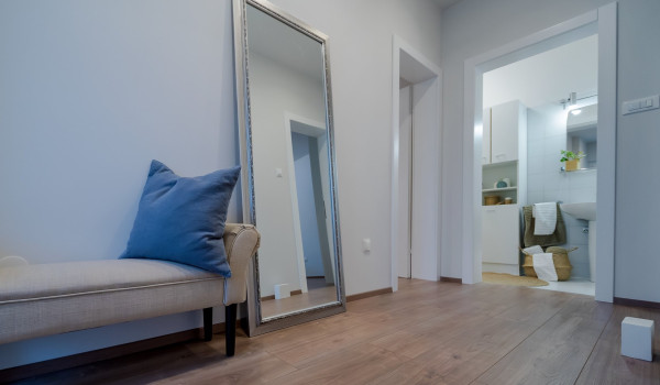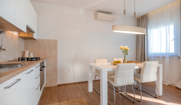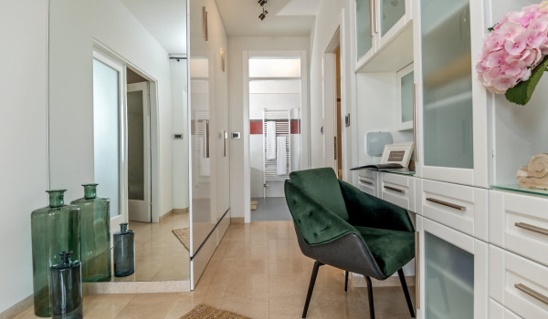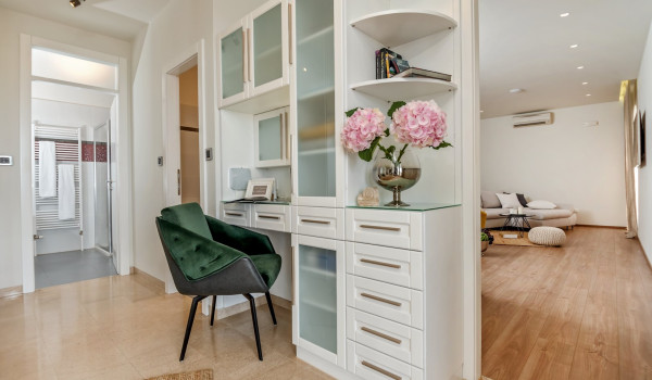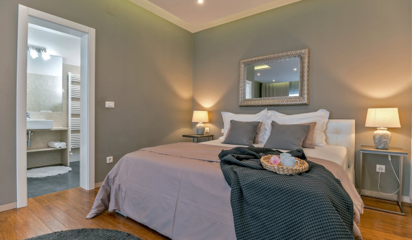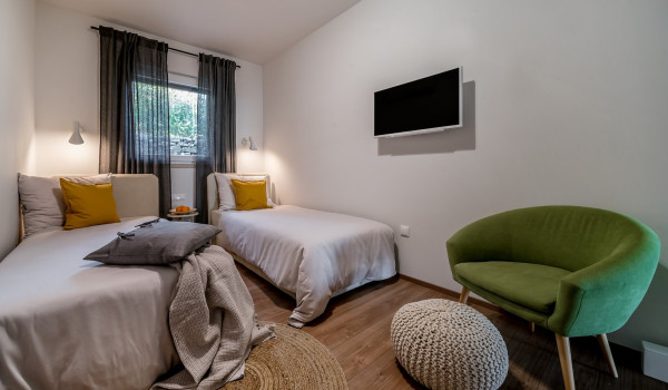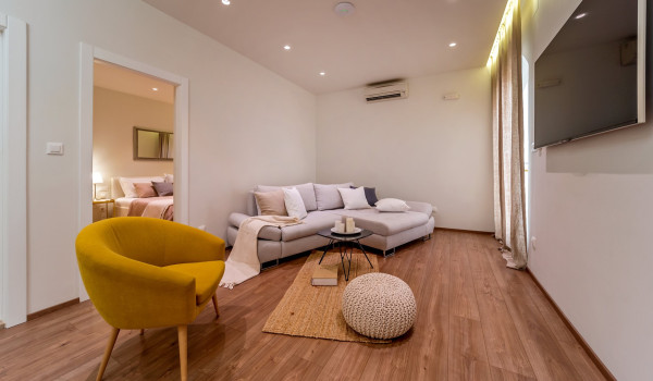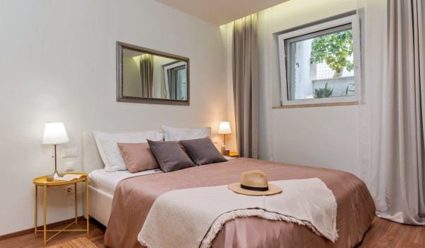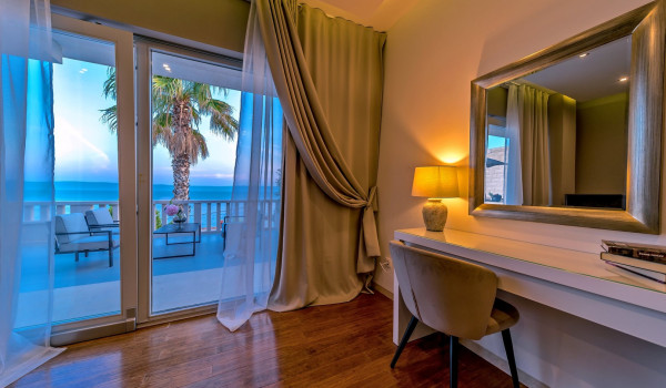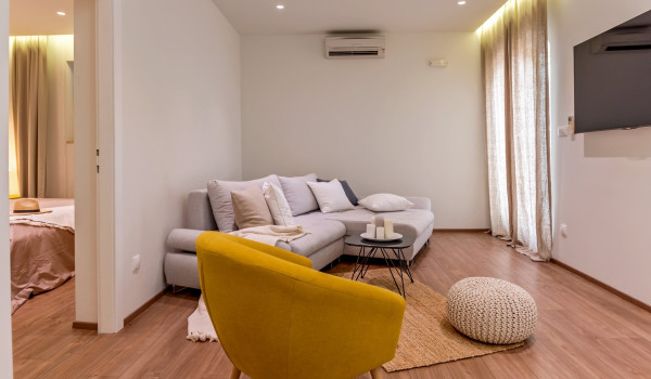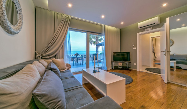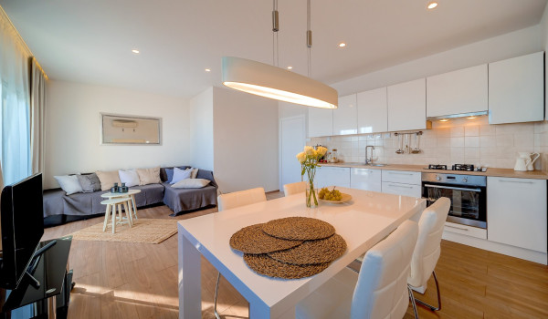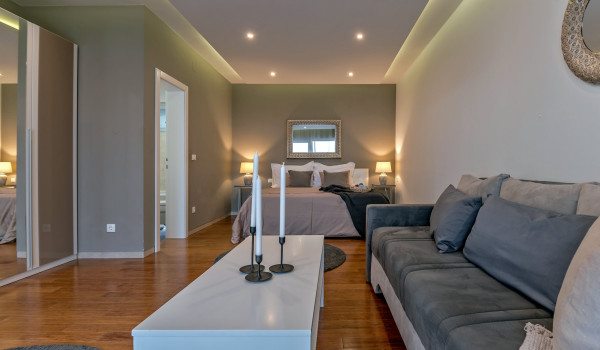 الطابق الأول مقسم إلى جزأين شرقي وغربي ، ولكل منهما مدخل منفصل. الجزء الشرقي من الأرضية ، الذي ينضح تصميمه بالبساطة والأناقة ، مجهز بمطبخ مع طاولة طعام من شأنها تعزيز إعداد وجبات الطعام اللذيذة في المساء ، بالإضافة إلى أريكة سرير كبيرة وتلفزيون SMART. يوجد أيضًا غرفتا نوم ، تحتوي إحداهما على سريرين مفردين يمكن ضمهما ، بينما تحتوي الأخرى على سرير كينج ، وكلاهما مجهز بتلفزيون SMART وحمامهما الخاص ، أحدهما به حوض استحمام والآخر به حمام. دش. الميزة الخاصة لهذه المساحة هي الخروج إلى الشرفة التي تبلغ مساحتها 16 مترًا مربعًا ، والتي لن تكون قادرًا على مقاومتها ترتيب المقاعد الجذاب وإطلالة فريدة على أفق البحر.