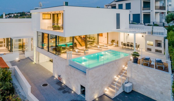 إلى الطابق الأول من الفيلا الفاخرة Sutivan Diamond 2 يمكننا الوصول إلى هناك عن طريق السلالم الخارجية والداخلية. يوجد مسبح مدفأ شلال ، حيث يمكنك الاستمتاع بإطلالة رائعة على قناة Brač ، محاطًا بشرفة تغمرها أشعة الشمس، والتي تحتوي أيضًا على طاولة تتسع لـ 8 أشخاص وشواية حجرية مخصصة لإعداد الأطباق الدلماسية الشهية. غرفة المعيشة ، المفصولة بجدران زجاجية كبيرة ، مدمجة بأناقة في البيئة وبها أريكة كبيرة هي المكان المثالي للتواصل الاجتماعي والاسترخاء. مطبخ مجهز بالكامل وطاولة طعام لـ 8 أشخاص في الطابق الأول كمكان لتنغمس جميع حواسك.