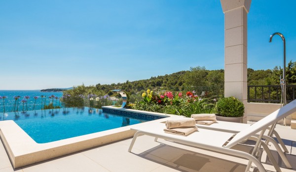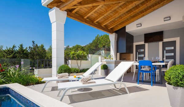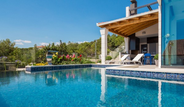 اقض لحظات لا تُنسى مع أحبائك واستمتع برفاهية Villa Blue Heaven Ciovo مع حمام سباحة ووسائل الراحة فيه والبحر الصافي والطبيعة البكر المحيطة.