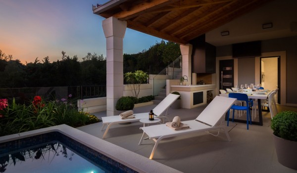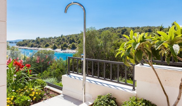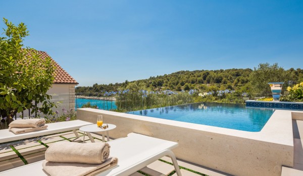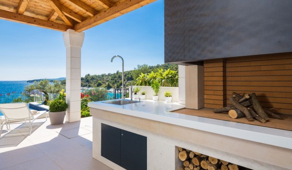 عند وصولك إلى Villa Blue Heaven Ciovo ، ستستقبلك حديقة مزينة بشكل ساحر حيث يوجد مسبح لا متناهي مدفأ بعمق 1.5 متر مع شلال تدليك بين لعب أنواع مختلفة من زهور البحر الأبيض المتوسط. استرخ على كراسي الاستلقاء بجانب المسبح أو تلك الموجودة على الشرفة النهارية واستمتع بشمس البحر الأبيض المتوسط. الساحة الأمامية للفيلا مغطاة وفي أحضانها تحتوي على مطبخ خارجي لا مفر منه مع مغسلة وشواية دالماسية وطاولة وكراسي لتناول الطعام.