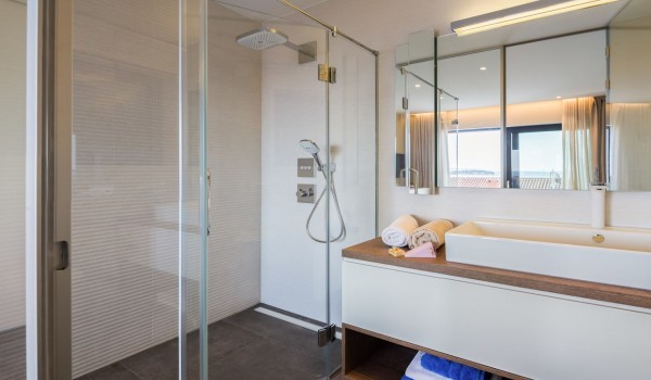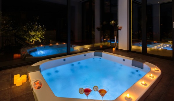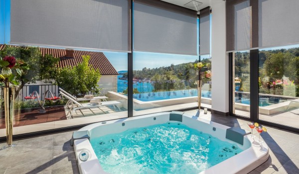 يحتل الجاكوزي الداخلي مكان خاص في جزء الطابق الأرضي ، والذي يقع بجوار الجدران الزجاجية التي من خلالها ينفتح منظر جميل على البحر.
