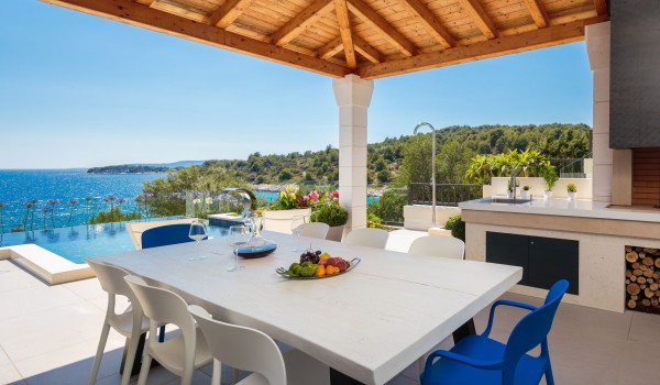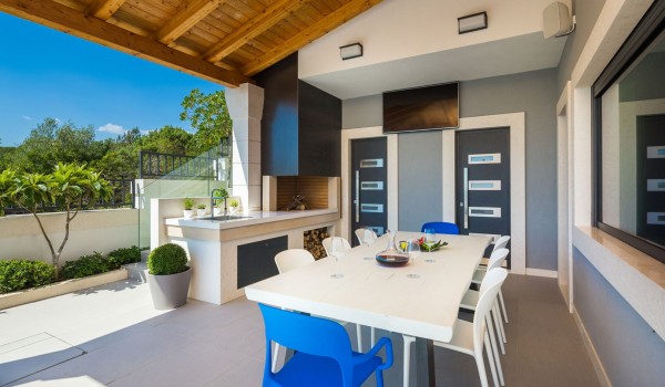 Luxury Villa Blue Heaven Ciovo هي فيلا حديثة مع مسبح لا متناهي دافئ وساونا وجاكوزي وصالة ألعاب رياضية وإطلالة على البحر الأدرياتيكي البلوري والطبيعة البكر المحيطة الواقعة في جزيرة Čiovo في Okrug gornji. توفر لك Villa Blue Heaven Ciovo الاسترخاء المضمون مع خدمة من الدرجة الأولى بجوار البحر وشاطئ Tatinja المغطى بالحصى ، على بعد 30 مترًا فقط من الفيلا. استمتع بأناقة هذه الفيلا ، ولمزيد من الإطلالات الممتدة والترفيه ، قم بزيارة مدينة Trogir الغنية تاريخياً ، والتي لا تبعد سوى 3.2 كم ، أو Split ، التي تبعد 21 كم فقط عن Villa Blue Heaven Ciovo الفاخرة.