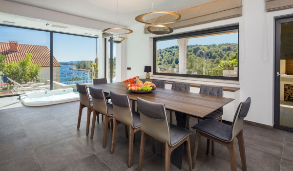 تمتلئ Luxury Villa Blue Heaven Ciovo بلوحات حديثة كبيرة الحجم وأثاث حديث مصمم يؤكد بشكل أكبر على أناقتها ويشير إلى اهتمام كبير بأدق التفاصيل. من أجل العمل وفقًا لأعلى المعايير البيئية وكفاءة الطاقة ، تم دمج نظام HVAC الذي يحسن دوران الهواء والحلول الذكية وحلول الترفيه وإضاءة LED لزيادة كفاءة الطاقة.