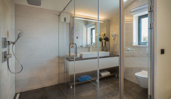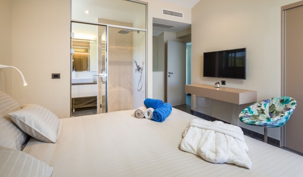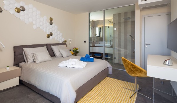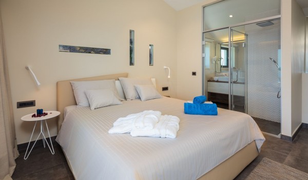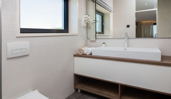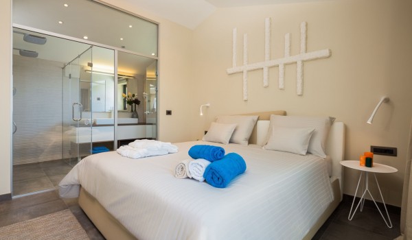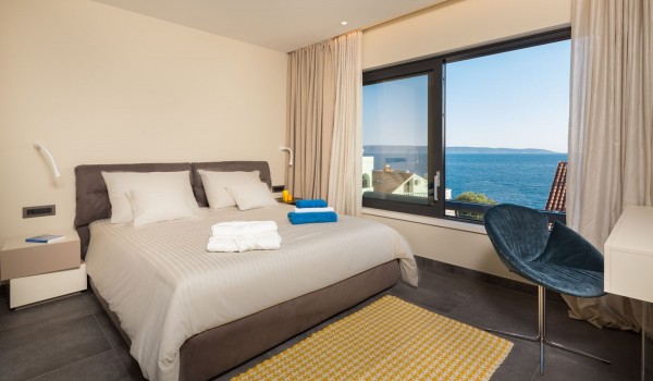 من غرفة المعيشة ، تقودك السلالم المزودة بإضاءة جدارية مرحة إلى المكان في الطابق الأول من Villa Blue Heaven Ciovo حيث توجد غرفتي نوم. تحتوي غرفة النوم الأولى على سرير بحجم كينغ وحمام داخلي حديث مع دش وشرفة مع أثاث للجلوس ستوفر لك لحظات من الاسترخاء والاستمتاع بغروب الشمس الساحر. تحتوي غرفة النوم الثانية أيضًا على سرير بحجم كينغ وحمام داخلي مع دش وشرفة فرنسية يمكنك من خلالها الاستمتاع أيضًا بلعب الشمس والبحر.