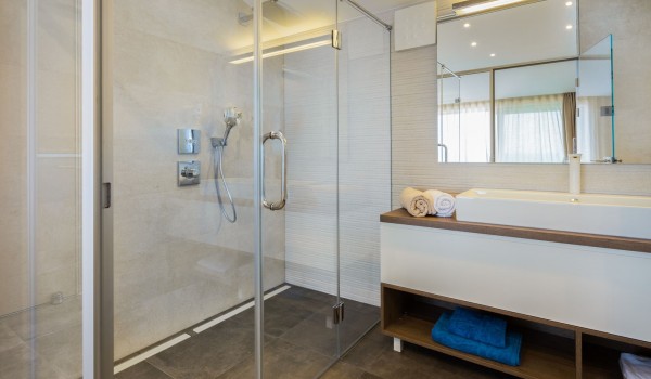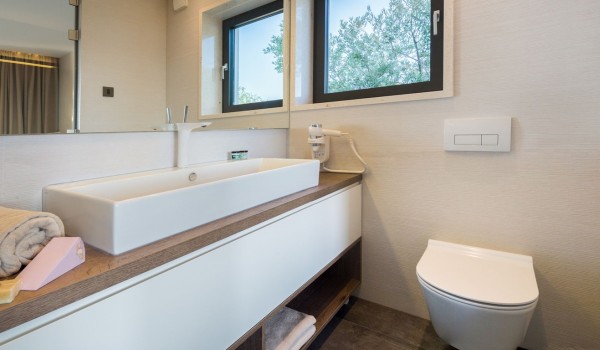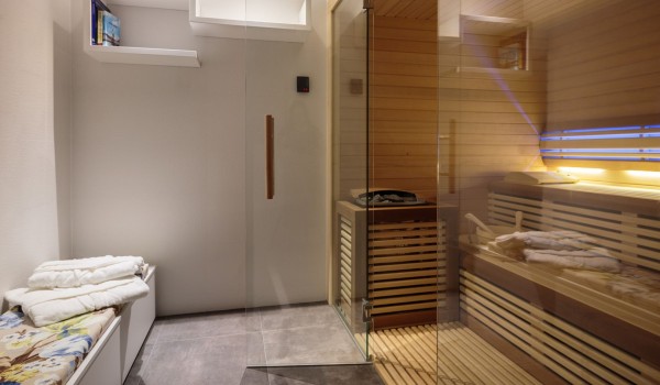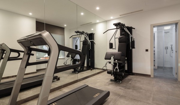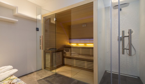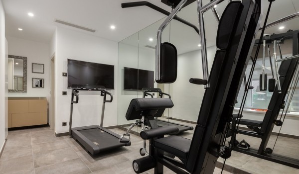ستكشف الهندسة المعمارية المرحة لهذه الفيلا أيضًا عن واحة عافية خاصة حيث ستجد صالة ألعاب رياضية مع معدات التمرين وساونا وكابينة دش منفصلة ومرحاض. هنا يمكنك الاستمرار في ممارسة روتينك الترفيهي والاسترخاء.
