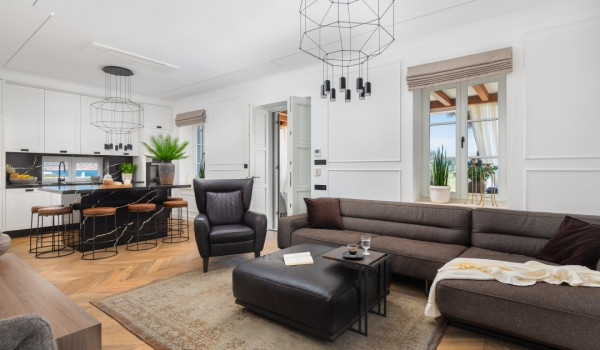 مدخل منطقة المعيشة بين هاتين المنطقتين. عند دخولك إلى الداخل الواسع والمفتوح لمنزل الإجازة الخاص على الواجهة البحرية مع إطلالة على البحر، ستلاحظ المطبخ المجهز بالكامل مع جزيرة المطبخ على يمينك، بينما يوجد غرفة معيشة مع صوفا مريحة، وجهاز الألعاب PlayStation4، وتلفزيون SMART، ومكتبة منزلية مع كرسي مريح على يسارك. من هذا المكان، يمكنك الوصول مباشرة إلى التراس أو كوخ الحجر المعبد مع مدفأة وممر يؤدي إلى تراس البيت الفاخر هذا على الواجهة البحرية.