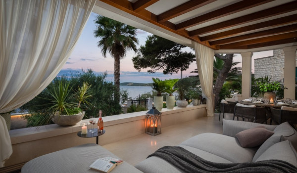 تعد فيلا Sensation الفاخرة الرائعة على شاطئ البحر ومع واحة خضراء خاصة بها محورًا بحد ذاتها. عند وصولك إلى الملكية مع وقوف السيارات الخاصة، تلاحظ منظرًا مريحًا من النباتات الخضراء المنظمة بشكل رائع مع فناء عناية دقيقة وأشجار نخيل، في حضنها يقع منزل رائع مجدد حديثًا على طابقين وهو Sensation Ciovo. مسار حجري بسيط مع بضعة درج يقودك إلى التراس المظلل الرئيسي على الطابق العلوي حيث يوجد طاولة طعام مع كراسي لـ 10 ومنطقة صالة كبيرة مع صوفا مريحة في الهواء الطلق، المكان المثالي للجلوس والاسترخاء أثناء قراءة كتاب مع كأس جيدة من النبيذ.