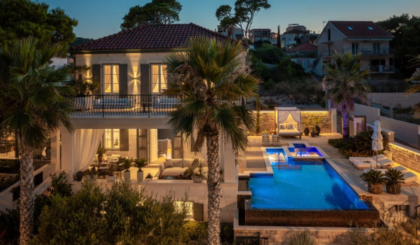 تقع فيلا كرواتيا الفاخرة للإيجار على البحر "سينسيشن تشيوفو" مع بركة سباحة وجاكوزي على ممتلكة خاصة محاطة بالكامل بمساحة 740 متر مربع، مليئة بالنباتات البحرية الخضراء، وأشجار النخيل، وفناء عناية دقيقة. الجزء السكني لهذه العقار الفاخر يوفر إقامة فاخرة على مساحة 270 متر مربع تنتشر على ثلاثة طوابق؛ الطابق الأرضي العالي والطابق الأرضي والطابق الأول.
