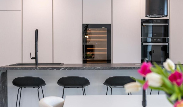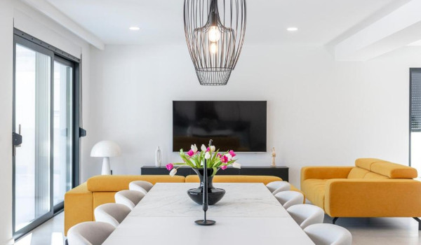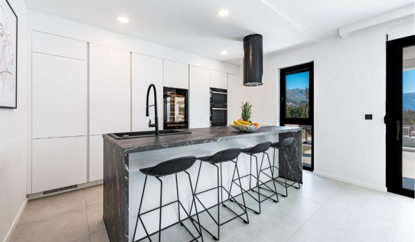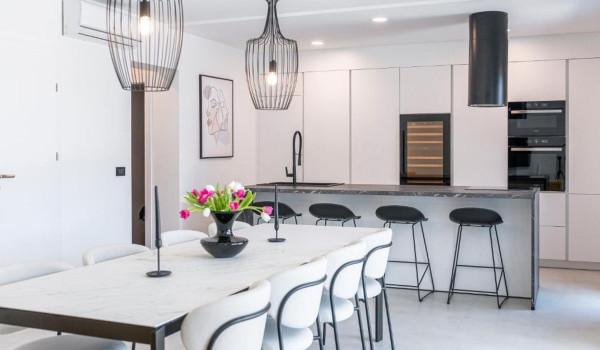 تحتوي غرفة الطعام على طاولة وكراسي واسعة (Calligaris) لـ 8 أشخاص. يحتوي المطبخ على جزيرة واسعة مع 4 كراسي بار. الجزيرة بها مغسلة وسطح عمل وموقد كهربائي وغسالة صحون وصانعة الثلج. يحتوي المطبخ المجهز تجهيزًا رائعًا على ثلاجة وثلاجة للنبيذ وفرن وميكروويف مدمج وآلة قهوة دولتشي جوستو وآلة قهوة فلتر ومحمصة كلاسيكية ومحمصة قابلة للطي وغلاية ومجموعة لتقديم الشاي. يحتوي المطبخ على توابل أساسية (ملح، فلفل، فيجيتا، زيت الزيتون، زيت دوار الشمس، أسيتو بالساميكو، إسفنج، مسحوق غسيل الصحون، مناشف المطبخ، ومناشف الورق). ثلاجة النبيذ مملوءة بأنواع مختلفة من المشروبات الكحولية وغير الكحولية. بالإضافة إلى آلات القهوة، هناك القهوة المناسبة (كبسولات لـ دولتشي جوستو، قهوة لآلة التصفية، وقهوة مطحونة ومجموعة متنوعة من أكياس الشاي). يحتوي حزم الترحيب أيضًا على فطيرة جبن محلية الصنع، وكعكة، وحلوى، وألواح شوكولاتة، ورقائق البطاطس، وآيس كريم، وفول سوداني.