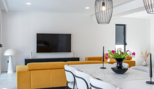 في الطابق الأرضي من الفيلا الفاخرة في دوبروفنيك Fiesta Dubrovnik للإيجار على البحر، يوجد مطبخ مجهز بالكامل وغرفة معيشة كبيرة مفتوحة مع وصول مباشر إلى التراس المظلل. يتميز داخل فيلا دالماتية Fiesta Dubrovnik بألوان ملونة ومساحة حديثة ومشرقة تخلق جوًا مريحًا. في غرفة المعيشة، هناك مجموعة أنيقة من الأرائك مع طاولة قهوة ملحقة وخزانة جميلة مع تلفزيون ذكي. في ردهة غرفة المعيشة، هناك طاولة كرة القدم وزاوية للأطفال مع ألعاب لوحية لتوفير تسلية إضافية للأطفال في الأوقات الحارة.