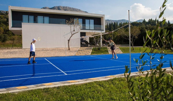 يوجد حمام سباحة في الجزء الأمامي من العقار. يوجد حول المسبح كراسي استلقاء حديثة وفريدة من نوعها للحمامات الشمسية وأثاث للراحة والاستمتاع بالشمس. ميزة خاصة لهذه الفيلا هي ملعب تنس الريشة ، وهو مثالي لأي شخص يرغب في قضاء إجازة نشطة وممارسة الأنشطة الرياضية.
