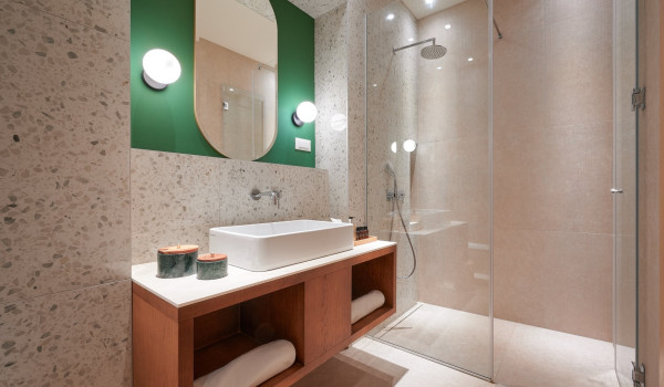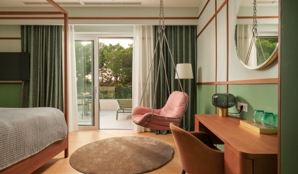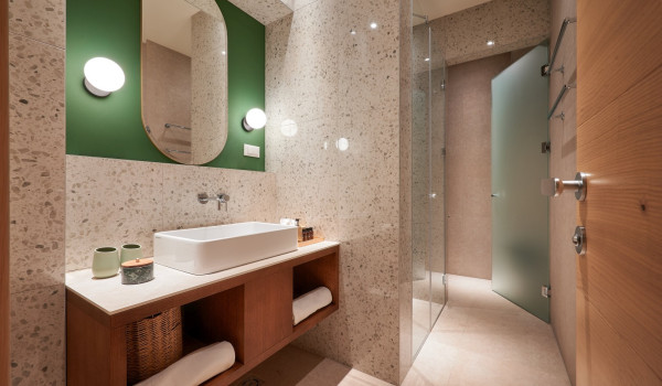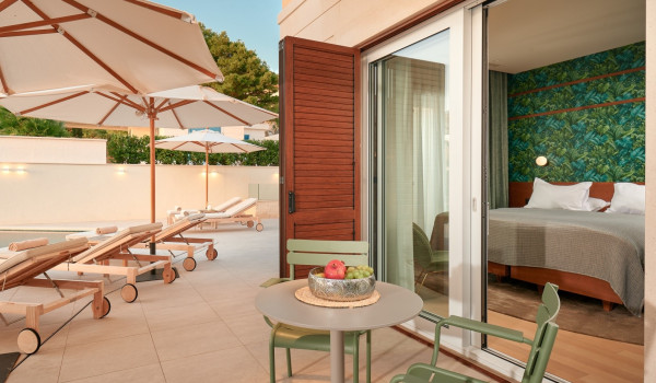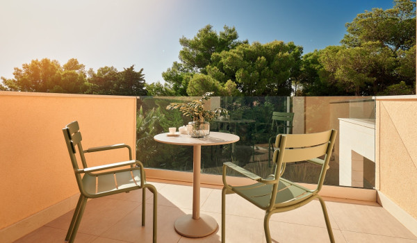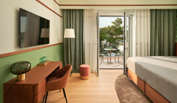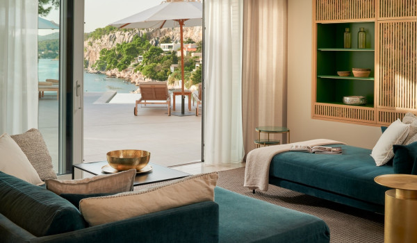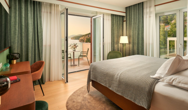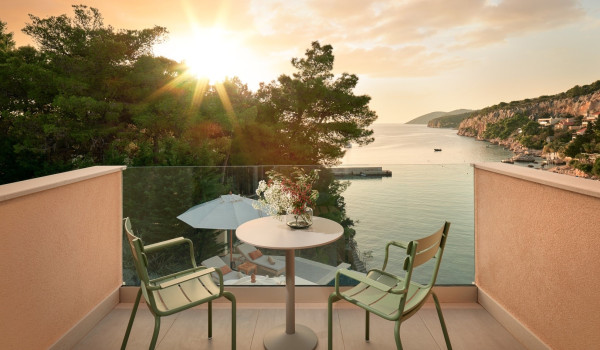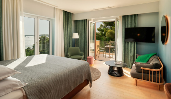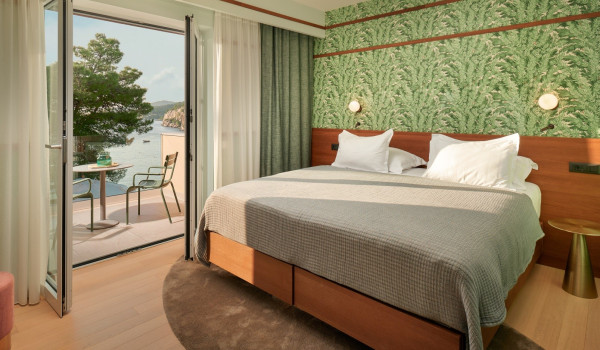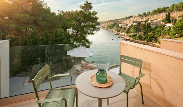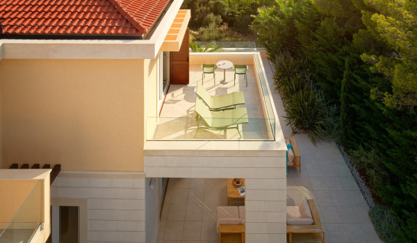 نصعد الدروج إلى الطابق الثاني حيث توجد 4 غرف نوم مع سرير بحجم كينغ وحمام داخلي. تحتوي جميع الغرف على شرفة خاصة مجهزة بمنطقة للجلوس مع إطلالات خلابة على الطبيعة المحيطة والبحر الأدرياتيكي الأزرق.