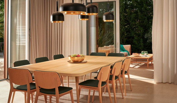 من الشرفة، ندخل إلى المساحة المفتوحة للطابق الأرضي من المنزل حيث توجد غرفة جلوس واسعة مع تلفزيون LCD وغرفة طعام مع طاولة تتسع لـ 10 أشخاص. المطبخ حديث ومجهز بالكامل بأحدث أجهزة المطابخ. يحتوي هذا الطابق أيضًا على غرفة النوم الرئيسية حيث بها سرير كينج وخزانة ملابس وحمام داخلي.