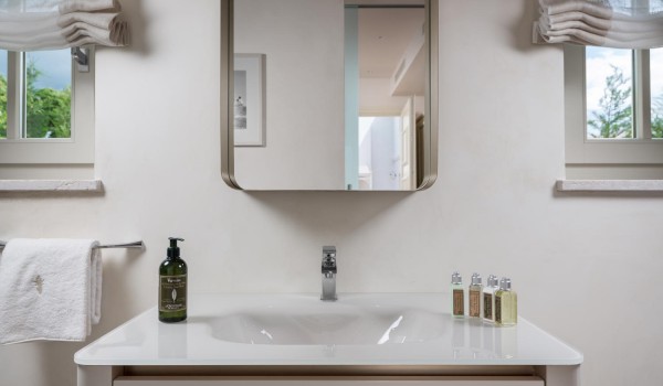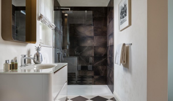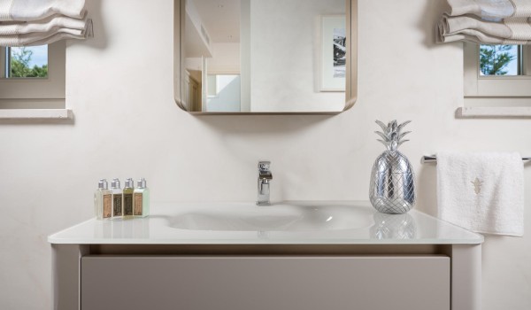 في الطابق الأرضي ، ولكن في ملحق منفصل بجوار المنزل الرئيسي ، توجد غرفتا نوم مع أسرّة بحجم كينغ وحمامات خاصة مع دشات.