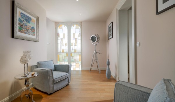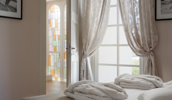 السلم الداخلي يؤدي إلى الطابق الأول حيث توجد منطقة جلوس أريكة ، مثالية لقراءة الكتب أثناء الاستمتاع بكأس من النبيذ الجيد. هنا يمكنك أن تجد غرفتي نوم. غرفة نوم واحدة بها سرير بحجم كينغ وحمام خاص مع حوض استحمام. تحتوي غرفة النوم الرئيسية أيضًا على سرير بحجم كينج وغرفة دش داخلية. تحتوي غرفة النوم هذه على شرفة يمكن الوصول إليه عن طريق درج خارجي.