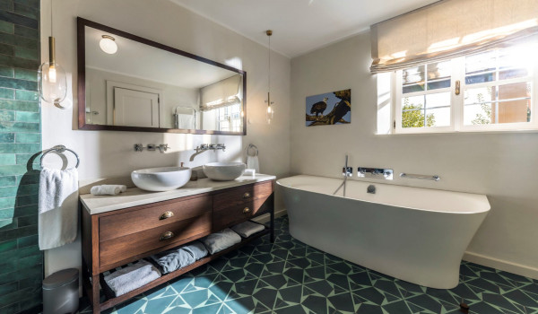 تقع في العلية العالية الجناح المزدوج المتبقي الذي يحتوي على سرير مزدوج وحمام داخلي مع حوض استحمام ودش وكراسي مريحة بمساند وخزانة ملابس وعوارض خشبية جميلة في السقف ستلاحظها فور دخولك إلى جناحك. هذه المساحة الحديثة المزينة بعناية تنضح بالدفء والأناقة.
