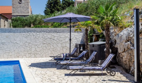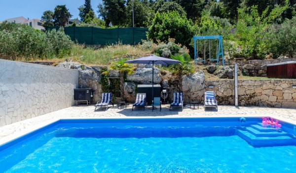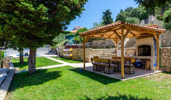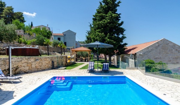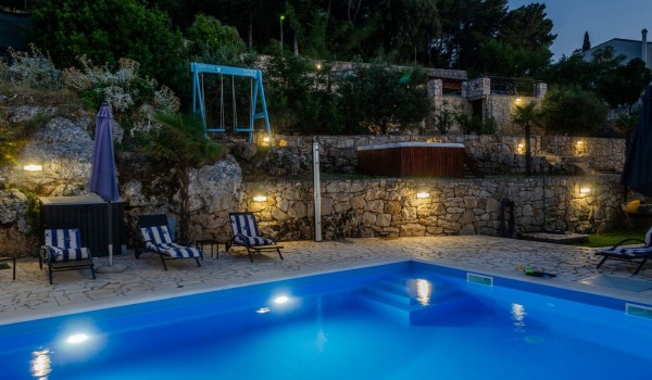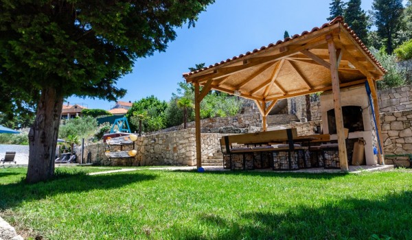 عند الوصول إلى هذا العقار الجميل في فيلا Gabriela الفاخرة ، فإن أول شيء ستلاحظه هو الحديقة ذات المناظر الطبيعية بعناية ، حيث يوجد مسبح مدفأ واسع محاط بكراسي استلقاء للتشمس ودش في الهواء الطلق. للاستمتاع الكامل ، يوجد أيضًا جاكوزي في الهواء الطلق حيث يمكنك الاسترخاء قدر الإمكان أثناء الاستمتاع بالمناظر الجميلة بشكل لا يصدق للسماء المرصعة بالنجوم. يؤدي المسار المرصوف إلى شرفة مغطاة مع طاولة طعام وشواية حيث يمكنك إعداد العديد من المأكولات الدلماسية التي تشتهر بها المنطقة بأكملها. يوجد أيضًا ترامبولين وأرجوحة هنا ، مما يجعل هذه الفيلا خيارًا مثاليًا إذا كنت مسافرًا مع أطفال.