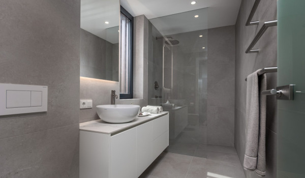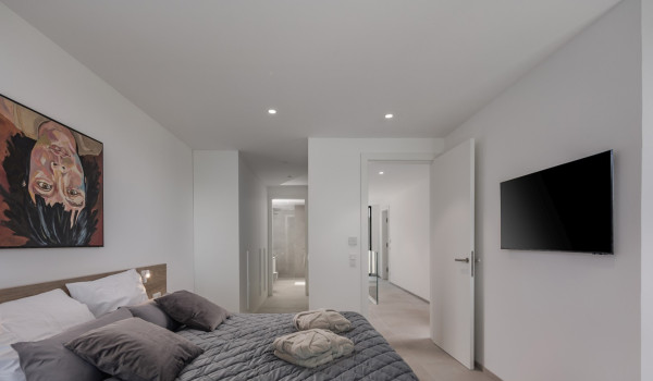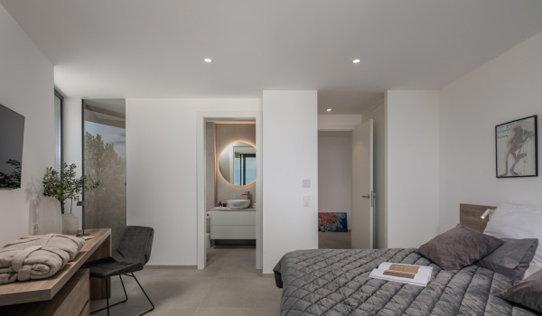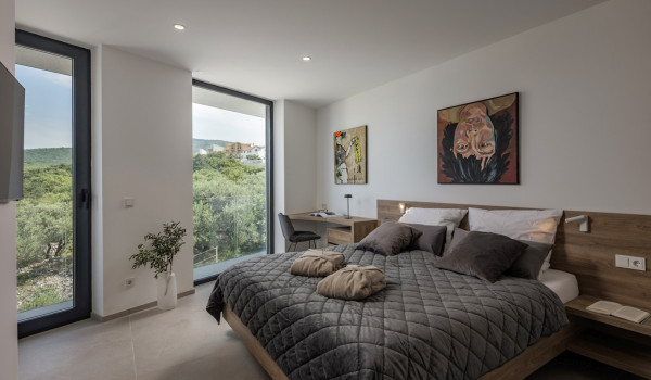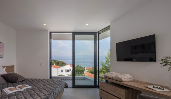 في الطابق الأول، هناك 3 غرف نوم مكيفة مزودة بـتدفئة تحت الأرضية، أسِرَّة كينغ سايز، وحمامات خاصة مع دش فاخر. تحتوي كل غرفة نوم على شرفة بإطلالة رائعة على البحر. كما تحتوي كل غرفة على سرير، بياضات الأسرَّة الفاخرة، مكتب للعمل، تلفزيون SMART TV مع نتفليكس، وحمام داخلي فاخر مع دش، مستلزمات استحمام مجانية، مناشف ومجفف شعر.
