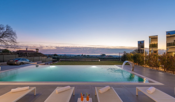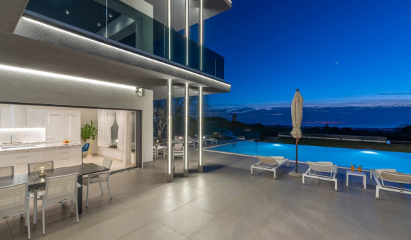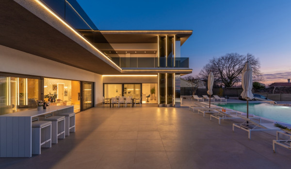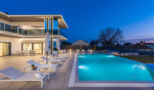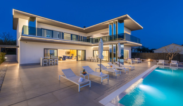 تم بناء هذه الفيلا الفاخرة مع حمام سباحة مُدفأ في إيستريا على قطعة أرض واسعة بمساحة إجمالية قدرها 1200 متر مربع، بمساحة إجمالية قدرها 400 متر مربع. تتكون من طابقين متصلين بسلالم داخلية، حيث يوجد، بالإضافة إلى مطبخ مجهز بالكامل مع منطقة لتناول الطعام وغرفة معيشة، 5 غرف نوم إضافية مع أسرة بحجم كينج وحمامات داخلية بها دُش وحمام داخلي واحد مشترك. يتوفر أيضًا للضيوف 5 مواقف للسيارات على ممتلكات الفيلا. هذه الفيلا الحديثة والمصممة بأناقة تصلح لـ 10 أشخاص.
