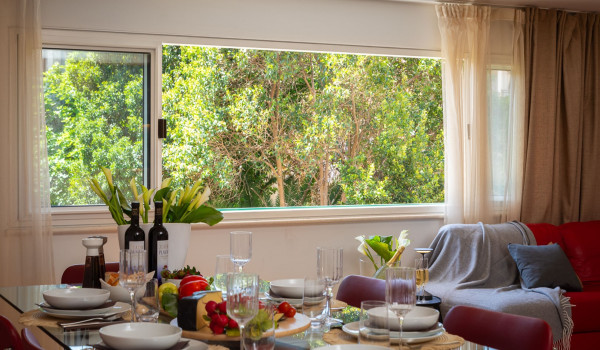 وأثناء التجول نحو الأمام، تصل إلى ركن جلوس صغير مزين بكرسي فاخر، ولكن في الوقت نفسه حديث يضمن لك راحة تامة مع إطلالة مريحة على الواحة الخضراء. بجوار الزاوية، هناك مدخل يقودك إلى غرفة معيشة واسعة ومضاءة بشكل طبيعي (40 متر مربع)، التي تحتوي أيضًا على مطبخ مجهز بالكامل. المطبخ مجهز بآلة قهوة (ديلونجي)، وشفاط، وغلاية، وفرن، وميكروويف، وموقد، وثلاجة. بجوار المطبخ المجهز بالكامل، هناك صوفا جلدية مريحة يتم تأكيدها بالسجادة الناعمة أمامها.