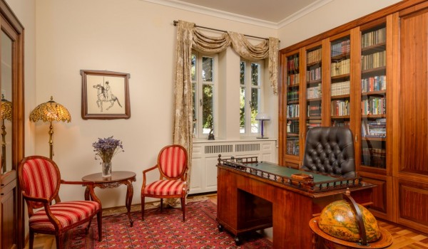 غرفة العمل ، وفي نفس الوقت مكتبة الفيلا، التي تقع في الطابق الأول ، ستسمح لك بالاستمتاع بهدوء هذه الفيلا الفريدة والقراءة من أحد الكتب العديدة المعروضة. تم تخصيص جزء خاص في هذا الطابق للراحة والاسترخاء حيث يمكنك الاستمتاع بالساونا. المرحاض يقع في نفس المستوى.