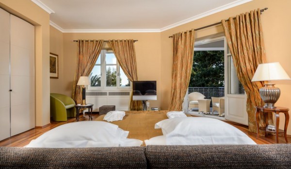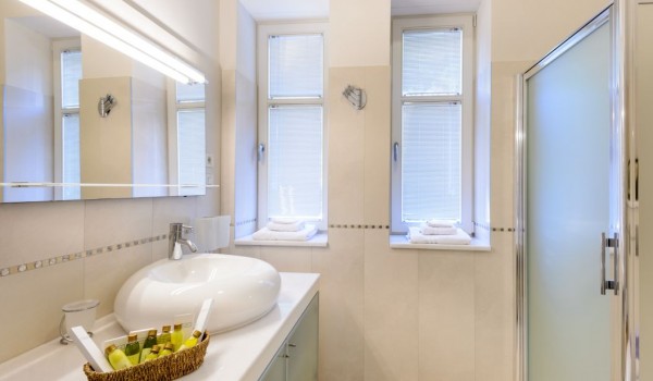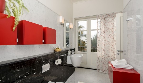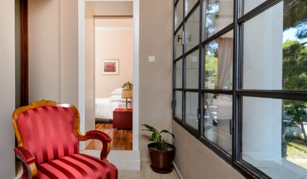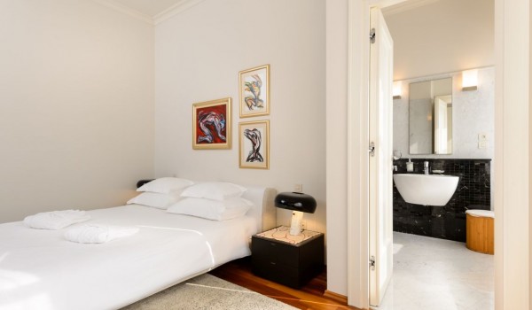 تحتوي غرفة النوم الثانية أيضًا على سرير مزدوج وحمام منفصل مع دش وشرفة مطلة على البحر. تشترك غرفتا النوم الأخريان ، وكلاهما مجهز بسرير مزدوج وشرفة وحديقة شتوية ، في حمام مشترك.