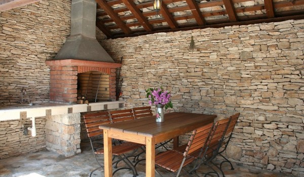 Der Innenhof der kroatischen Mietvilla Adriatic ist stolz auf seine authentische Sommerhacienda, die überdacht ist und mit Essmöbeln und einem Steingrill ausgestattet ist.