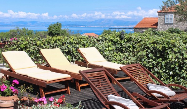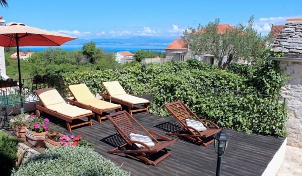 Eine massive Holztreppe verbindet den Wohnbereich mit dem Obergeschoss, wo sich zwei moderne Schlafzimmer und ein modernes Badezimmer befinden. Ein Zimmer hat ein Doppelbett, einen Arbeitsbereich und eine charmante dalmatinische Terrasse mit Blick auf das Meer. Das andere Zimmer ist mit 2 Einzelbetten ausgestattet, die zu einem großen Doppelbett zusammengestellt werden können. Erleben Sie eine besonderen Symbiose aus Luxus und natürlicher Schönheit. Das Sonnendeck bietet einen herrlichen Blick auf das Meer und die Berge in der Ferne. Die Stille, die die Villa Adriatic umgibt, wird nur durch das Zirpen der Grillen gestört. Am Morgen werden Sie sanft von der dalmatinischen Sonne und Vogelgezwitscher geweckt. Der Duft von mediterranen Pinien, Salbei und Rosmarin wird Ihre Sinne berauschen. Zudem versteckt sich ein kleiner, romantischer Garten hinter dem Haus mit Sitzmöbeln im Freien, ein idealer Ort, um Ihren ersten Morgenkaffee zu trinken.