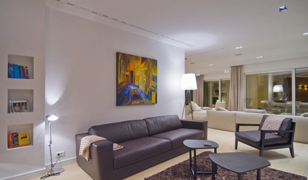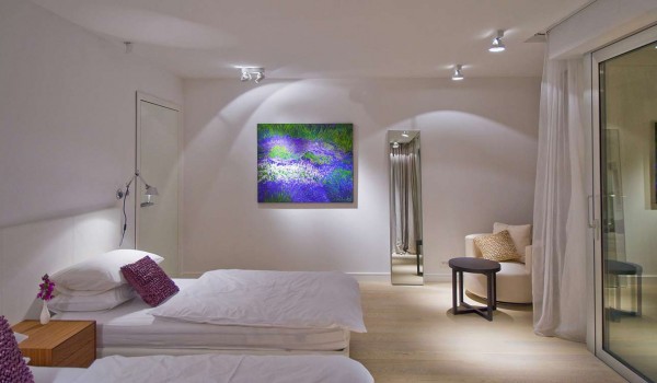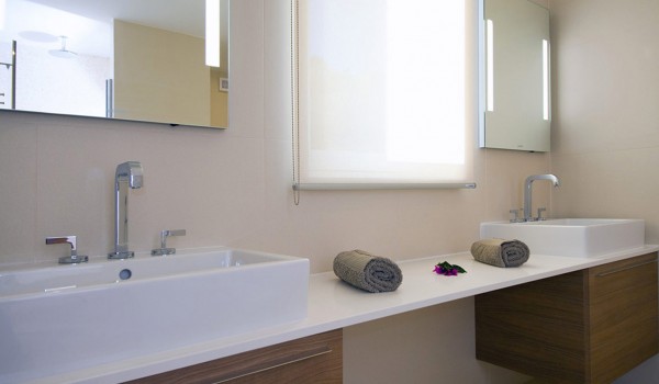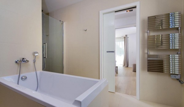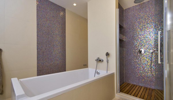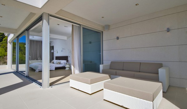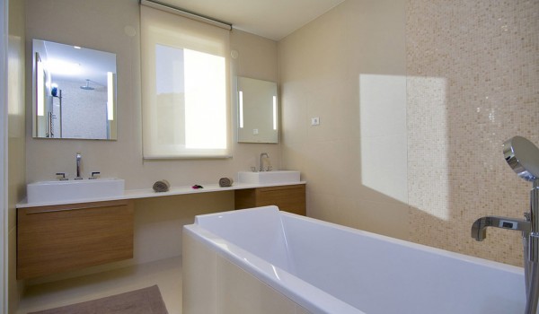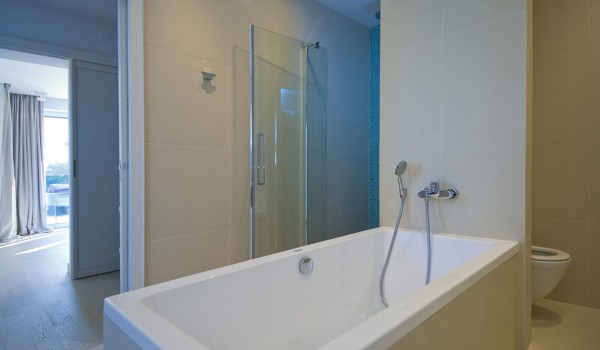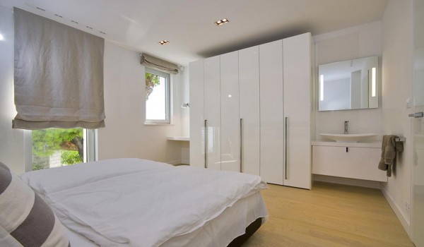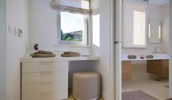 Eine Innentreppe führt in den ersten Stock der zu vermietenden Luxusvilla My Dream. Dieser Teil ist als Oase der Erholung, Entspannung, Ruhe und des Genusses konzipiert. Es gibt zwei Schlafzimmer und ein Zimmer für Spaß und Spiele - Fernsehzimmer, wo es ein Zustellbett gibt. Jedes Zimmer ist mit Doppelbetten und eigenen Badezimmern mit Dusche und Badewanne sowie einem Ankleidezimmer ausgestattet. Jedes Zimmer hat Zugang zu einer Terrasse. Die Terrassen sind nach Süden mit Blick auf das Meer ausgerichtet. In diesem Raum können Ein weiteres Badezimmer mit Dusche und Jacuzzi-Wanne befindet sich auf dieser Etage.