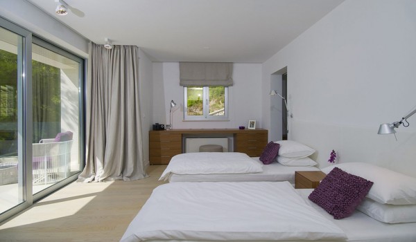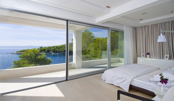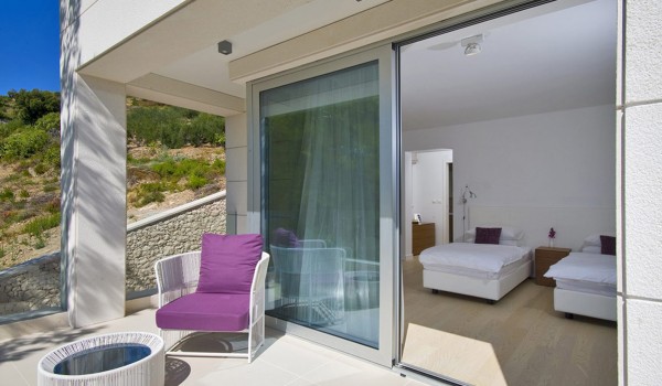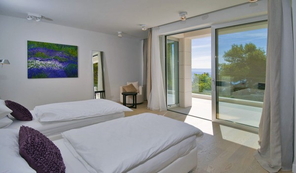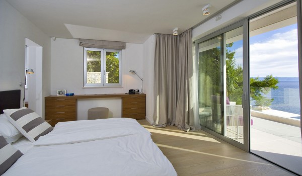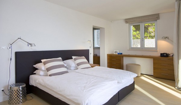 Im zweiten Stock (Dachgeschoss) der privaten Ferienvilla auf Brac haben zwei weitere Schlafzimmer ihren Platz gefunden. Beide Zimmer haben Doppelbetten. Ein Zimmer hat ein eigenes Bad und große Glasschiebetüren, die Sie auf die höchste und größte Terrasse mit Meerblick führen. Der atemberaubende Meerblick lässt niemanden gleichgültig.