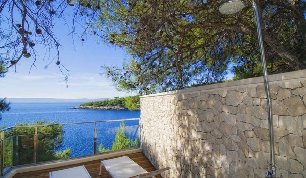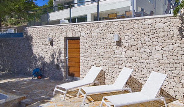 Diese Ferienvilla zur Miete auf Brac verfügt über 4 Schlafzimmer, 4 Badezimmer, 1 WC und eine Außendusche, Pool, Jacuzzi, Außenkamin, zahlreiche Terrassen, Weinkeller und ist die ideale Unterkunft für 8 (+1) Personen.