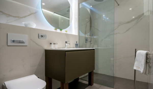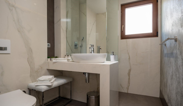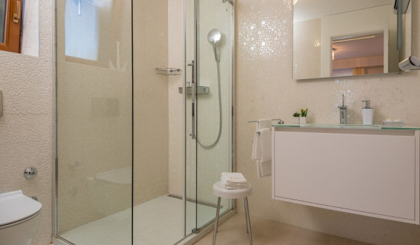 In den fünf Badezimmern befindet sich eine begehbare Dusche sowie andere Toilettenartikel wie Handtücher, Bademäntel, Haartrockner, Kosmetikprodukte usw., während sich im sechsten Badezimmer eine Ausnahme-Badewanne befindet. In zwei Schlafzimmern befindet sich auch ein Schlafsofa für eine zusätzliche Person.