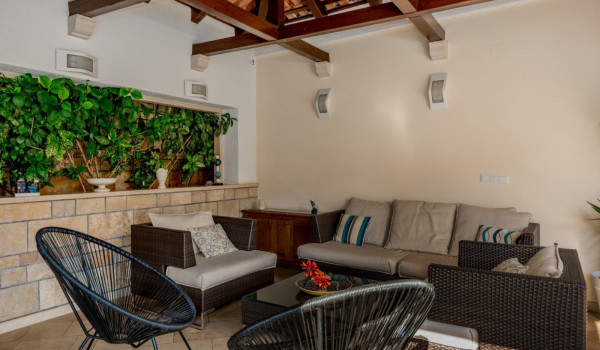 Im Innenhof der kroatischen Luxus-Privatvilla gibt es außerdem eine Außenküche, außerdem stehen eine Eismaschine (10 kg) und eine Jura-Espressomaschine zur Verfügung.