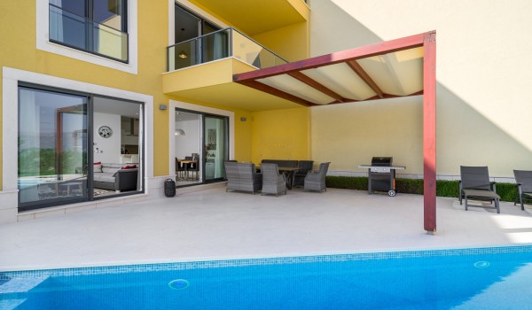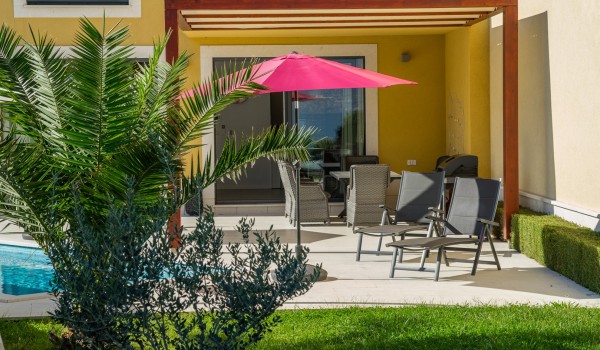 Im Innenhof der Luxusvilla Ciovo Joy 4 befindet sich ein privater Pool (24 m2) mit Liegestühlen, Sonnenschirmen, Grill und Esstisch.