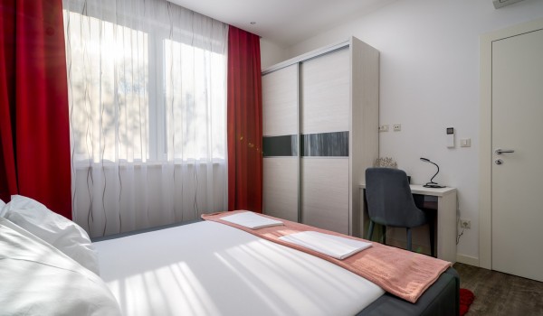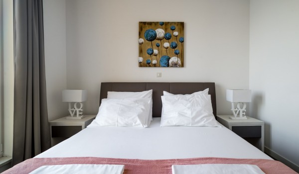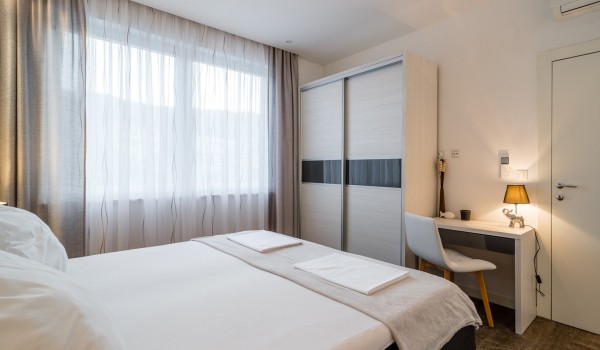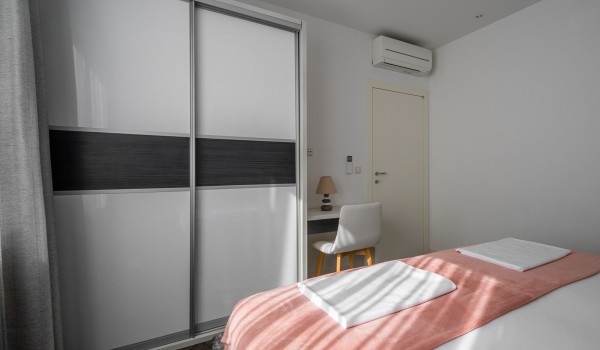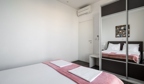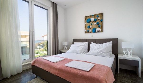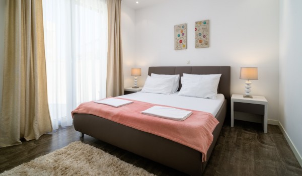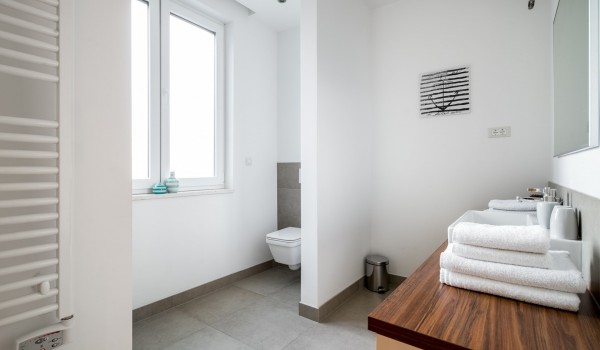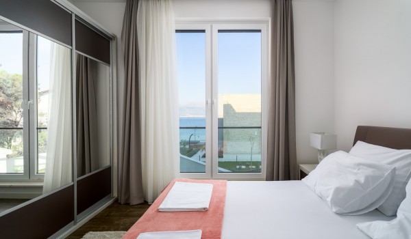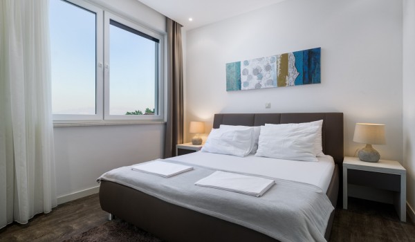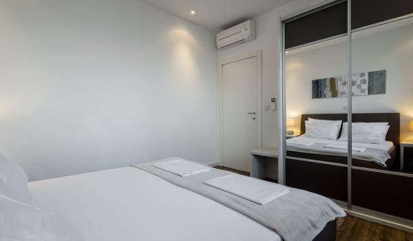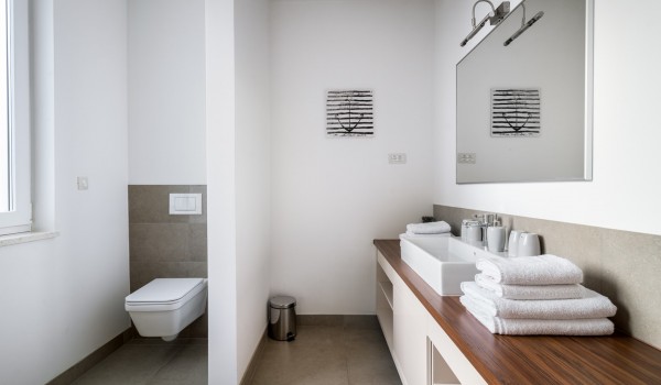 Die Luxusvilla Ciovo Joy 4 verfügt insgesamt über 6 Schlafzimmer mit Kingsize-Betten, LCD-TVs und eigenen Badezimmern sowie einem zusätzlichen WC. Vier Badezimmer sind mit Dusche und zwei mit Badewanne und Dusche ausgestattet. Die Luxusvilla Ciovo Joy 4 bietet Platz für 12 Personen.