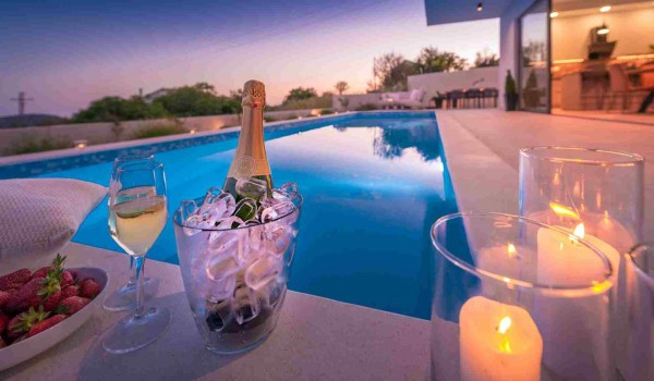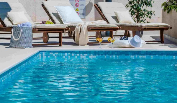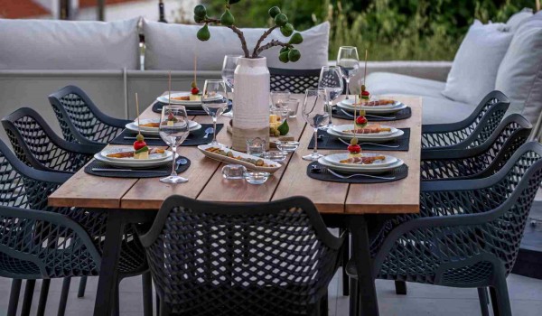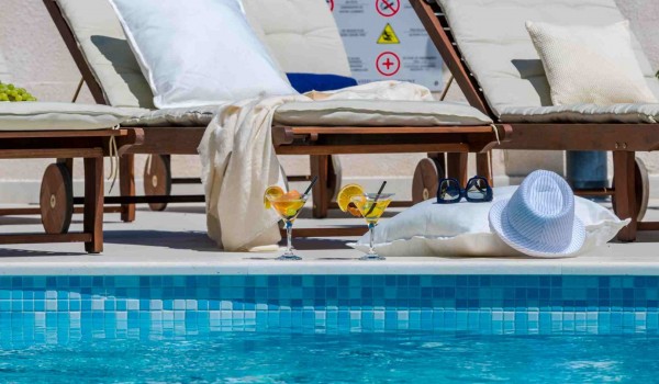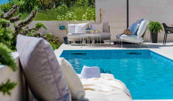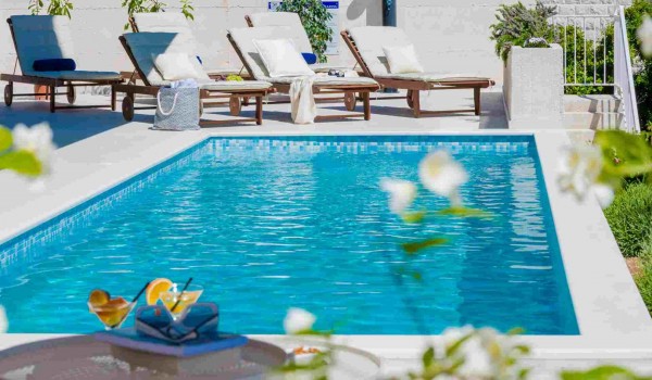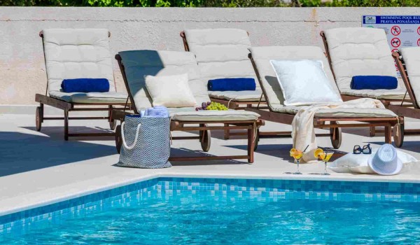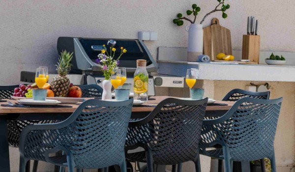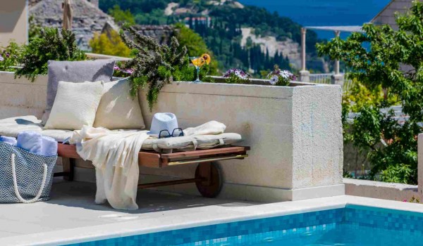 Die Luxusvilla Dubrovnik Blue Heart für einen unvergesslichen Urlaub mit Freunden verfügt über einen 40 m2 großen Swimmingpool mit Sonnenliegen und Sonnenschirmen, eine Außendusche, einen Außenesstisch mit Stühlen für 8 Personen und einen Gasgrill.