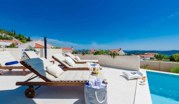 Die Luxusvilla Dubrovnik Blue Heart mit einem Pool, ist eine neue und moderne Villa zur Miete in der kleinen, ruhigen Küstenstadt Orašac. Es ist nur 11 km vom Zentrum der Altstadt von Dubrovnik und nur 750 m vom Meer und den Kiesstränden entfernt, was es zur perfekten Wahl für einen Urlaub macht.
