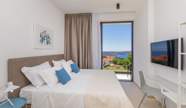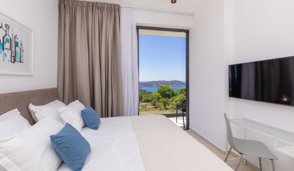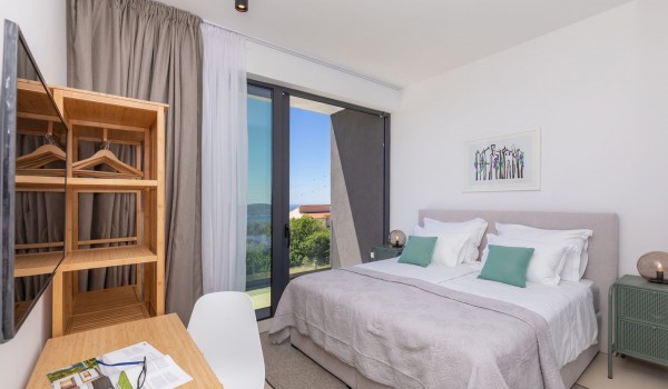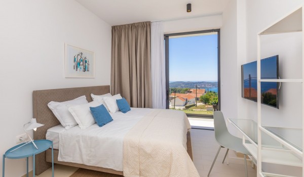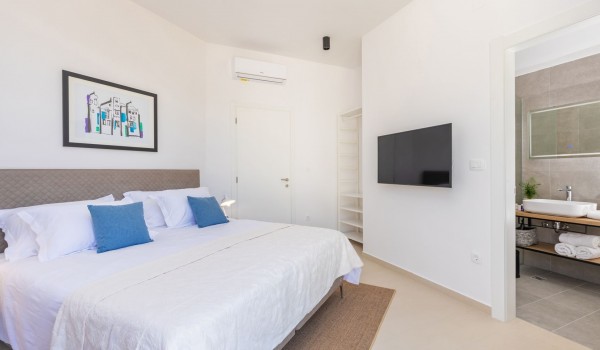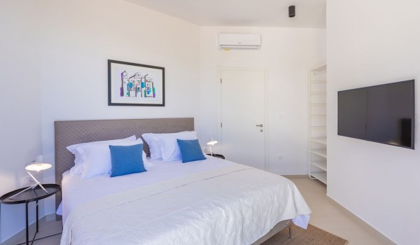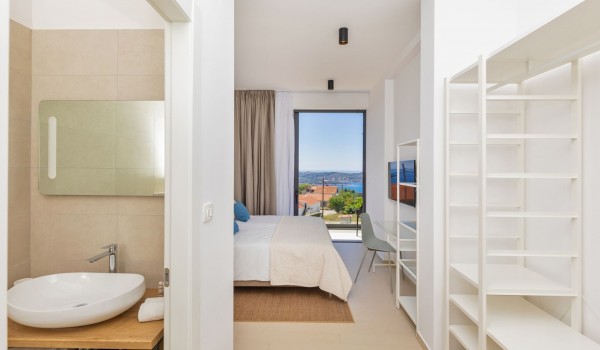 Das Erdgeschoss und der erste Stock dieser privaten Luxusvilla Dubrovnik Blue Heart sind durch Innentreppen verbunden. Es gibt vier Schlafzimmer im ersten Stock. Das erste und das zweite Schlafzimmer verfügen über ein Kingsize-Bett, einen Fernseher, ein eigenes Badezimmer mit Dusche und einen Balkon mit Meerblick. Das dritte und vierte Schlafzimmer verfügen über ein Kingsize-Bett, einen Fernseher und teilen sich ein Gemeinschaftsbad mit Dusche.
